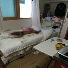 바닥에는 혈흔 및 분비물, 부패물이 묻지 않은 관계로 약품 처리하여 닦아내었습니다.