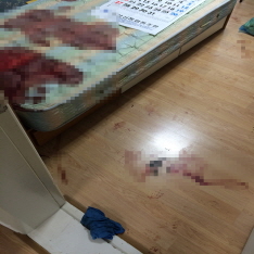 바닥에 너저분하게 묻어있는 혈흔은 혈흔/혈액제거제를 살포하여 모두 닦아 내었습니다.