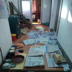 혈액제거제를 살포하여 바닥 및 미닫이문에 묻어 있는 혈흔을 모두 제거하였습니다.