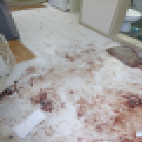 - 혈액으로 오염된 부분을 중점적으로 고온 스팀 청소를 진행하였습니다.