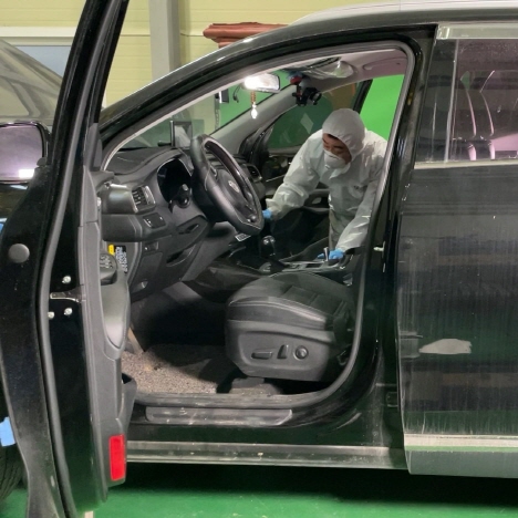 그리고 차량 내부 특수청소를 진행하였으며 연막항균제를 살포하여 항균탈취, 소취 작업을 모두 완료하였습니다.